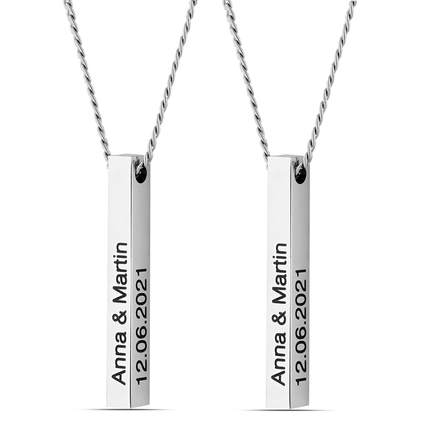 2 x Cuban Chain 3D Partner Säulenketten mit Gravur - OTANTO