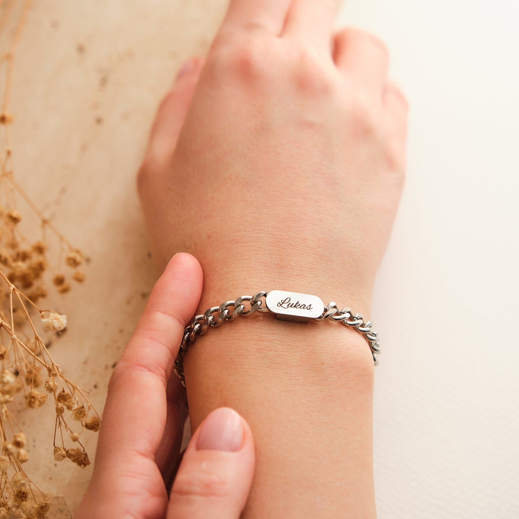Lorsque les bijoux ne sont pas seulement un accessoire, mais une pièce unique, ce bracelet est le choix idéal. Avec notre bracelet personnalisé pour partenaire, votre style personnel ressort. Le bracelet peut être personnalisé avec un nom, un mot ou une date, et serait votre bijou de mode unique. Pour tous les individualistes, mais aussi comme cadeau créatif, c'est le bijou parfait qui met en valeur chaque tenue - qu'elle soit sportive ou élégante.