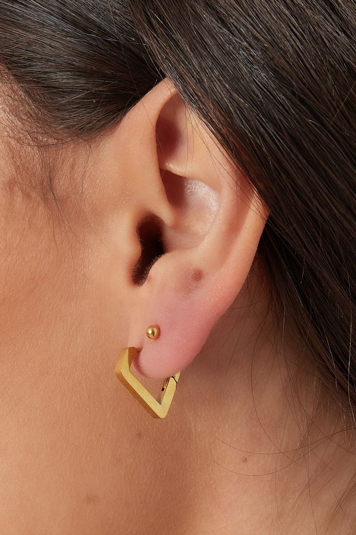 Avec ces boucles d'oreilles moyennes en forme de diamant, tu fais une déclaration de style élégante. La forme géométrique combinée à la finition dorée brillante fait de ces boucles d'oreilles le bijou idéal pour une élégance moderne. Elles sont assez polyvalentes pour sublimer ta tenue au quotidien comme lors d'occasions spéciales.