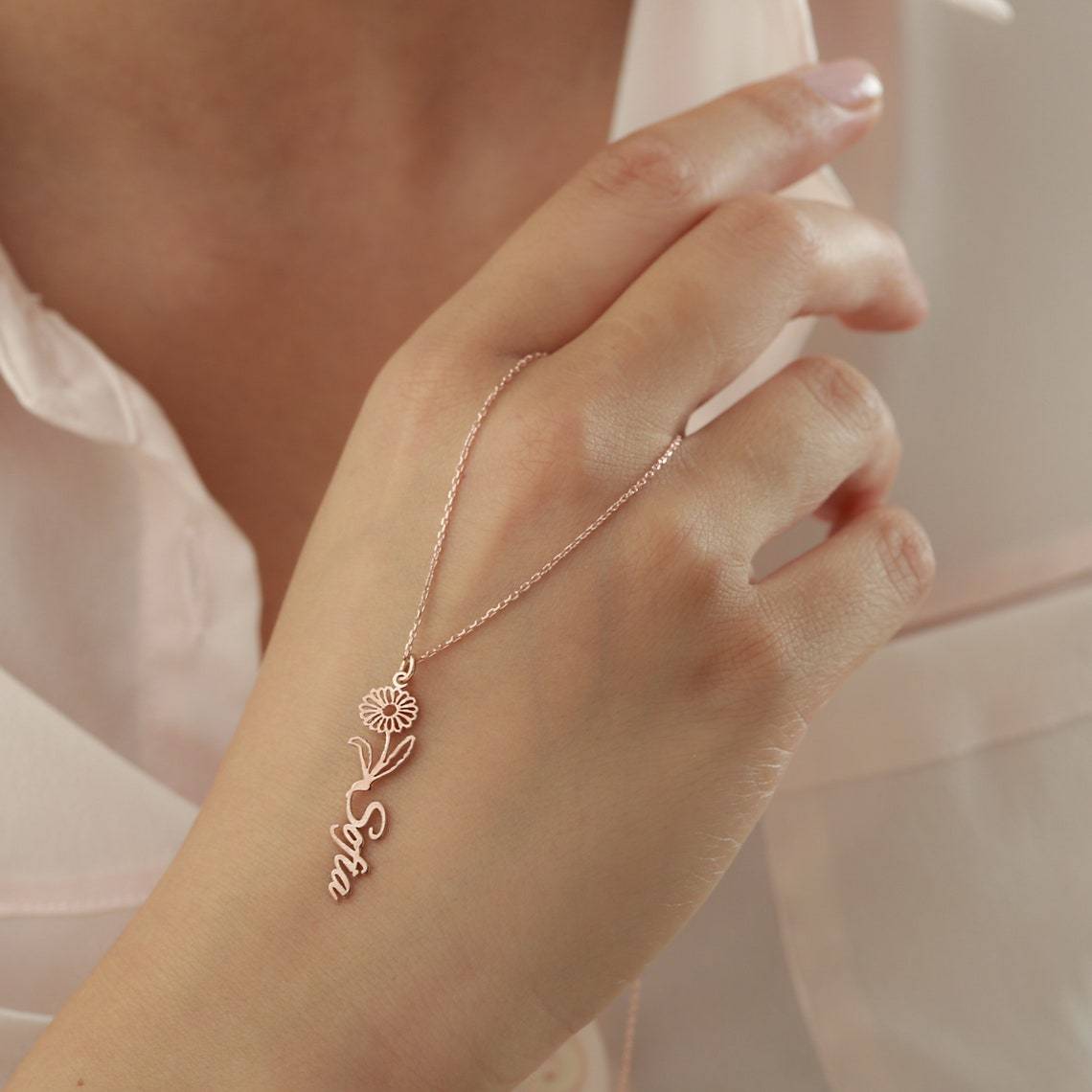 Ce bijou unique est l'expression de ta personnalité et une merveilleuse façon de porter ton histoire avec style. La gravure délicate de la fleur complète parfaitement le nom et fait du collier un véritable accroche-regard.