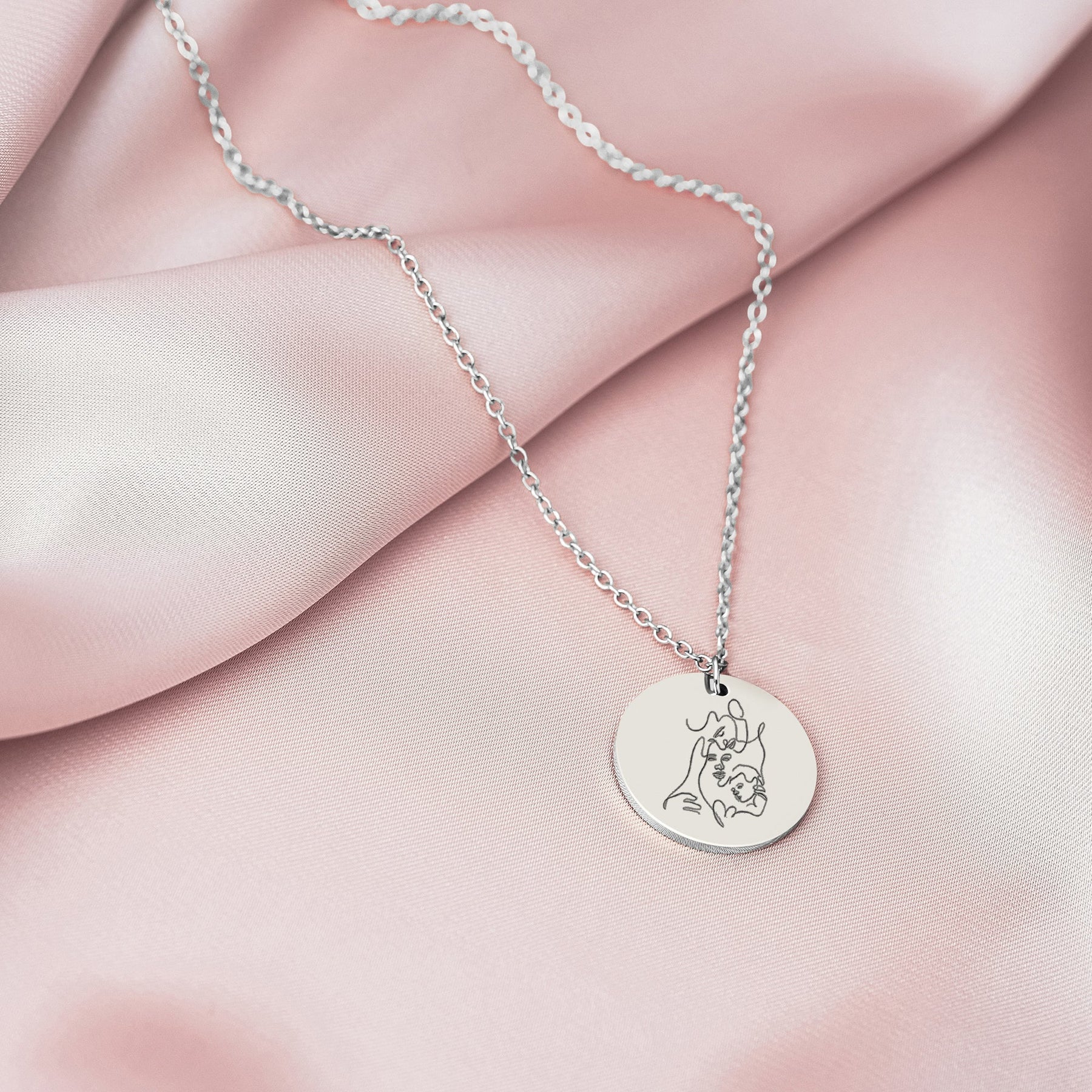 Ce collier personnalisé en acier inoxydable 316L avec votre propre design One Line Art gravé est la manière parfaite d'exprimer votre style et ce qui compte pour vous. Donnez-nous simplement une image qui vous tient à cœur, et notre équipe de designers talentueux la transformera en une œuvre d'art unique, tracée d'une seule ligne. Cette technique spéciale assure un design minimaliste mais profond, que nous gravons ensuite soigneusement dans le robuste acier inoxydable 316L.