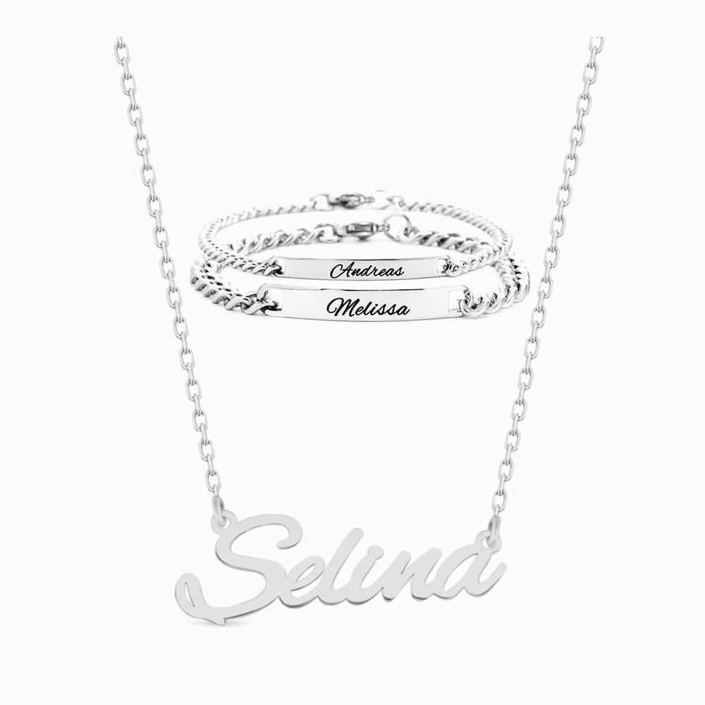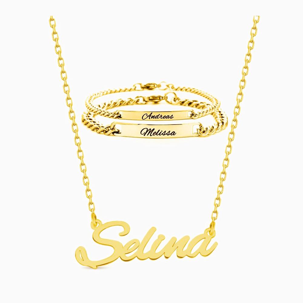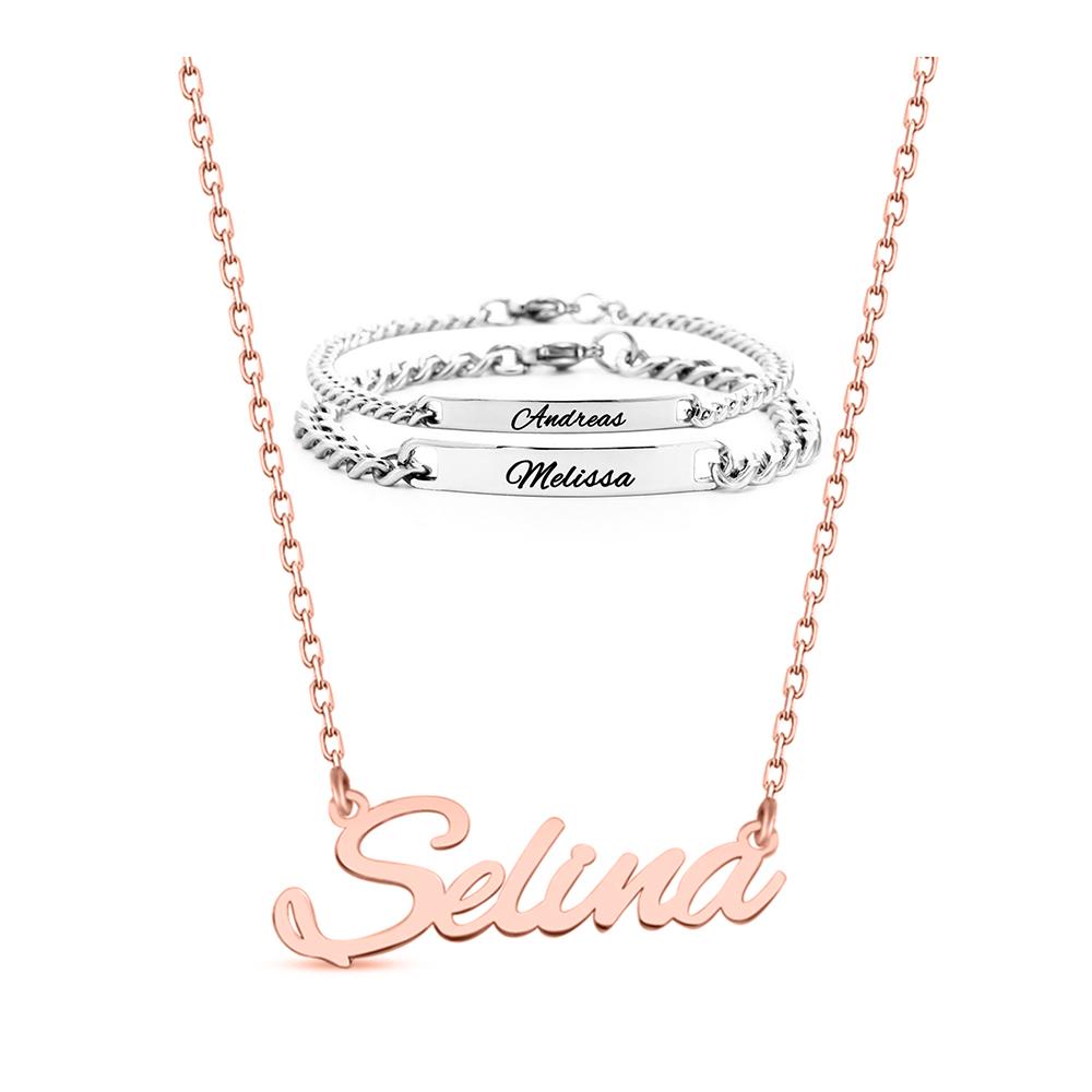 Contenu : Chaîne de nom & bracelets partenaires