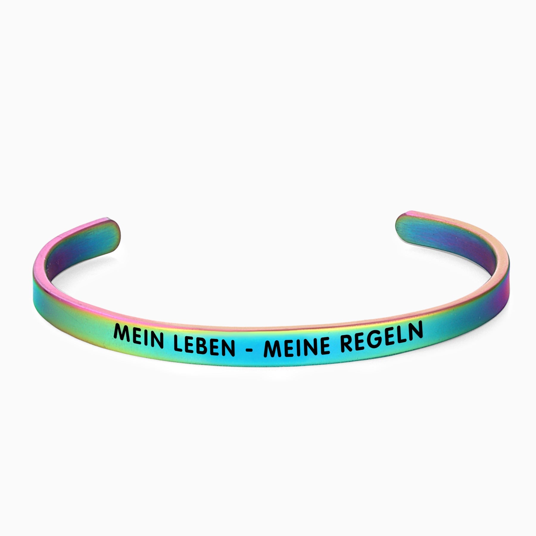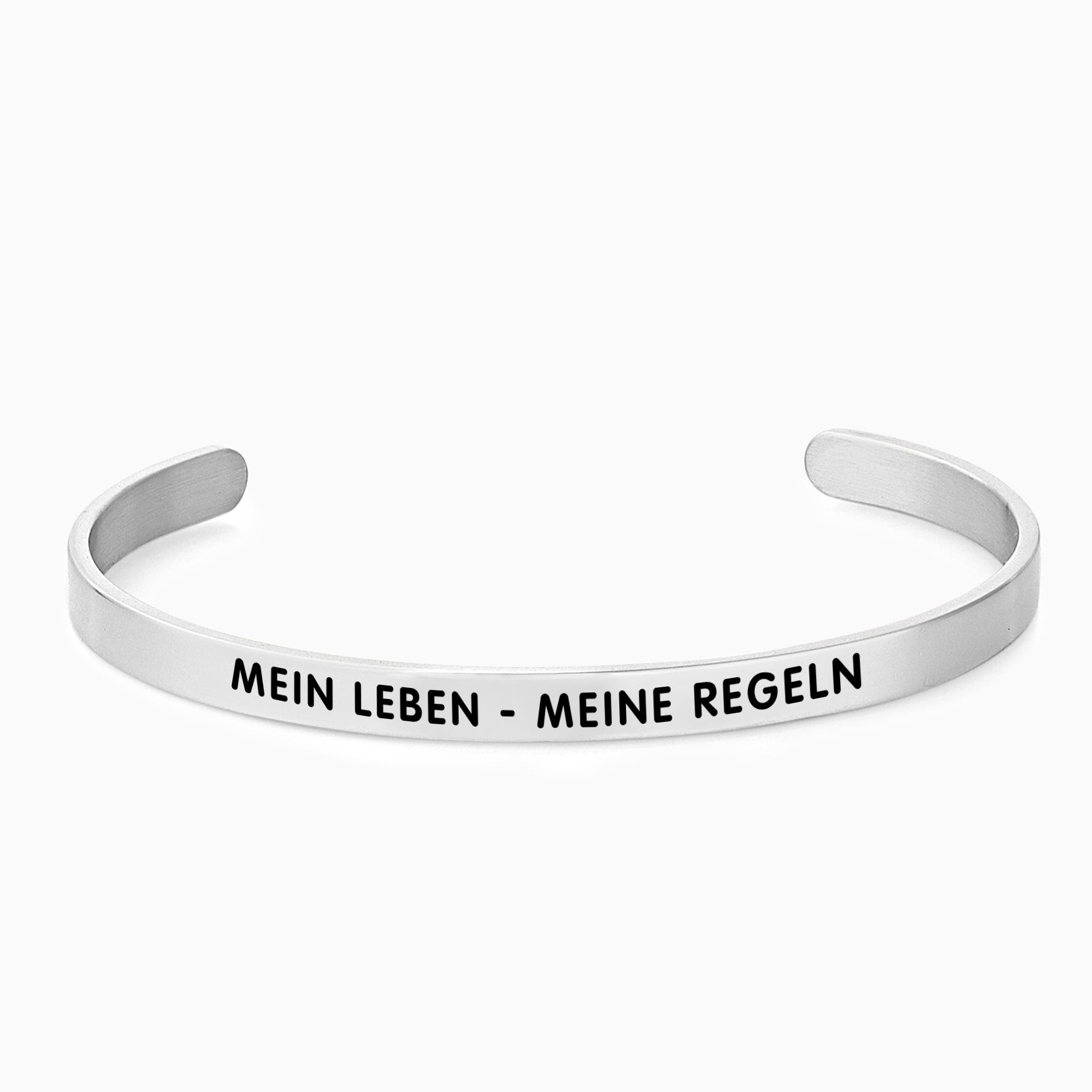 Découvrez la magie de "Ma vie - Mes règles" avec le bracelet "Ma vie - Mes règles" et faites-en votre compagnon constant dans le voyage vers une vie autonome et épanouie. Plongez dans la signification profonde et laissez le message inspirant toucher votre cœur. Montrez au monde que vous avez le pouvoir de façonner votre propre vie, et laissez votre âme briller dans une mer de force et d'accomplissement de soi.
