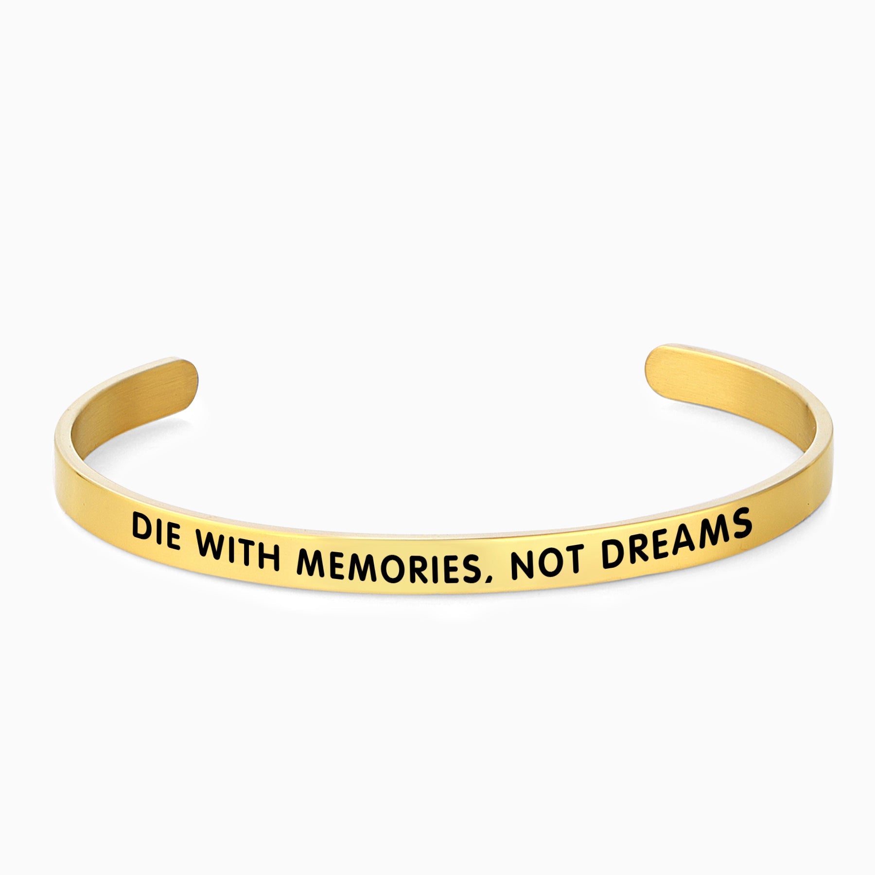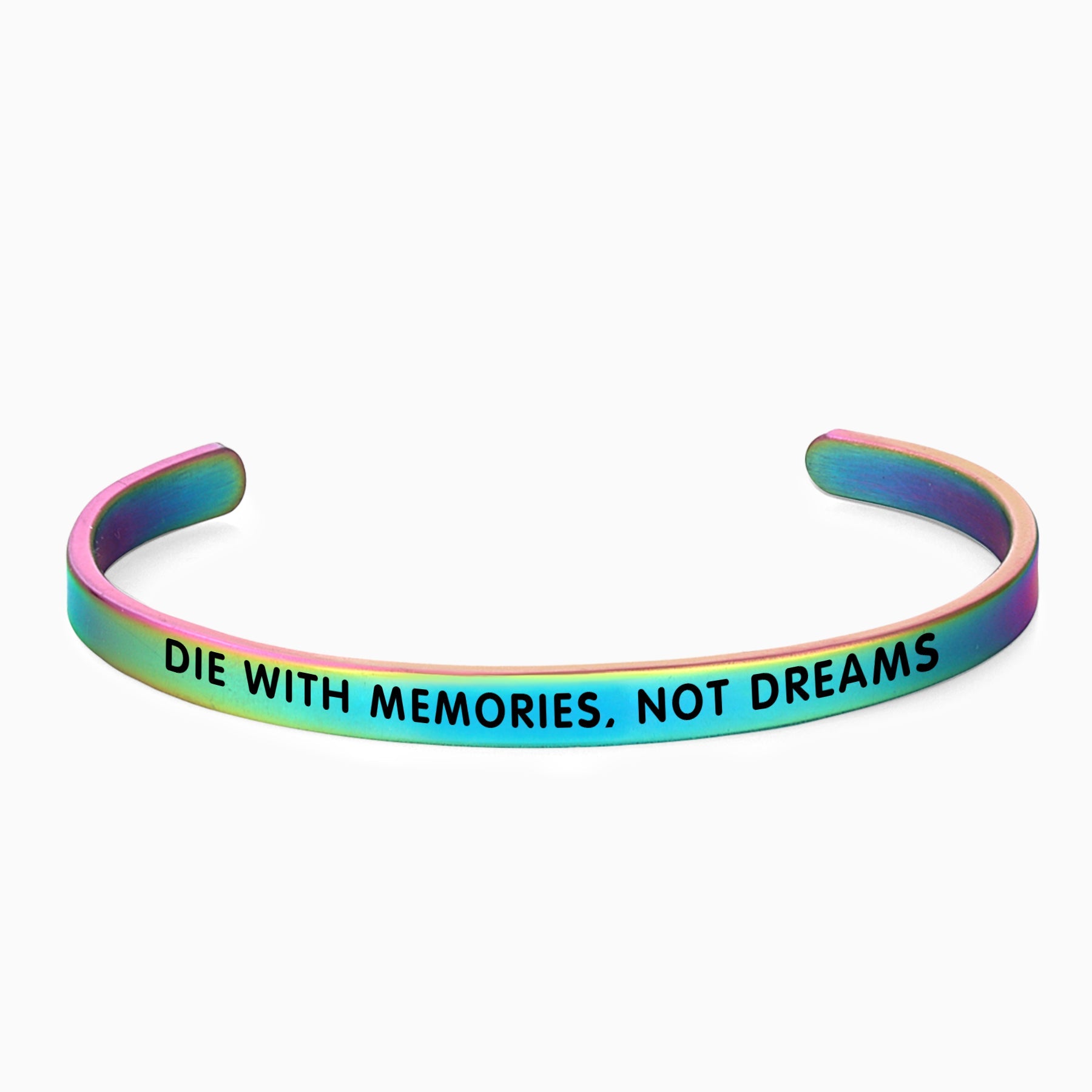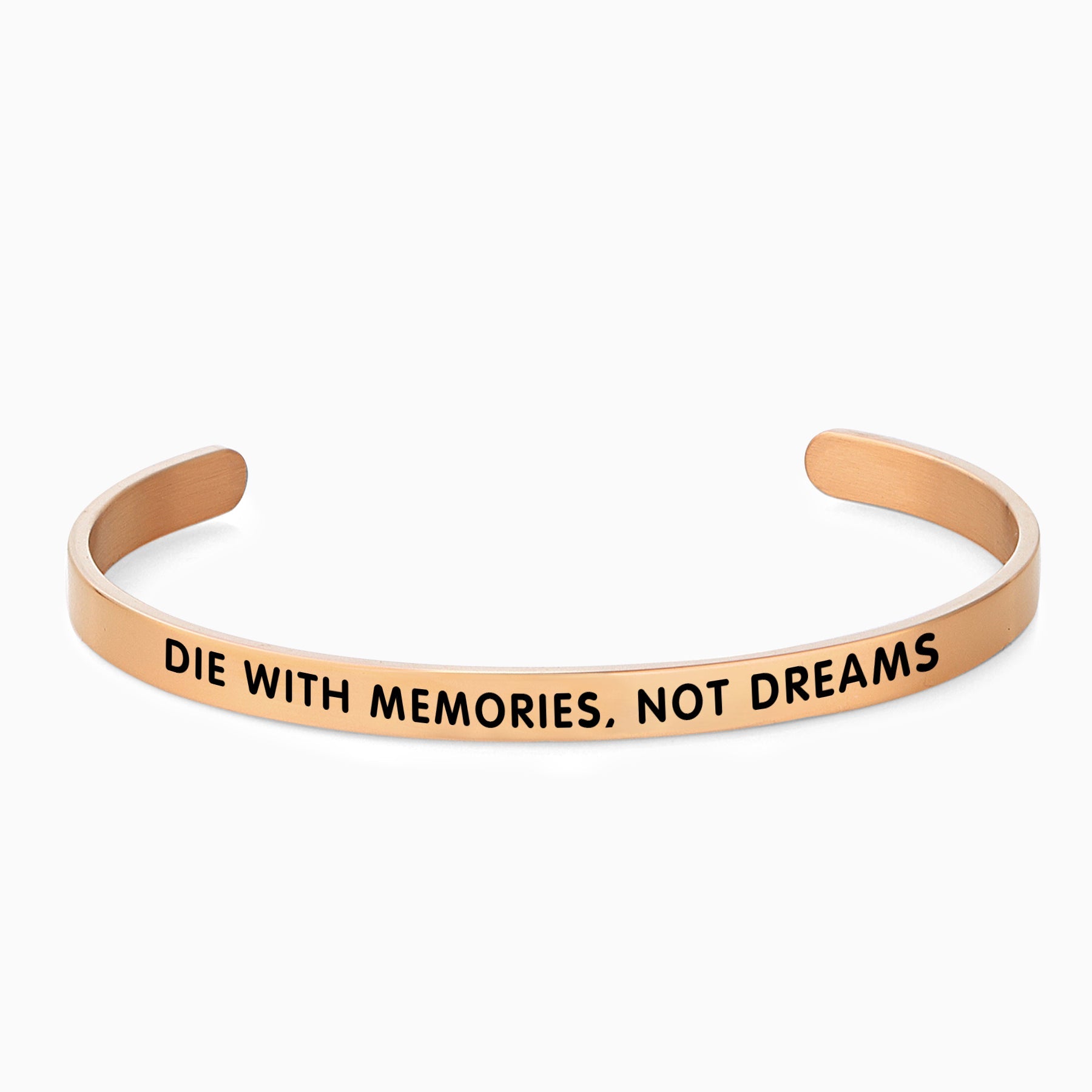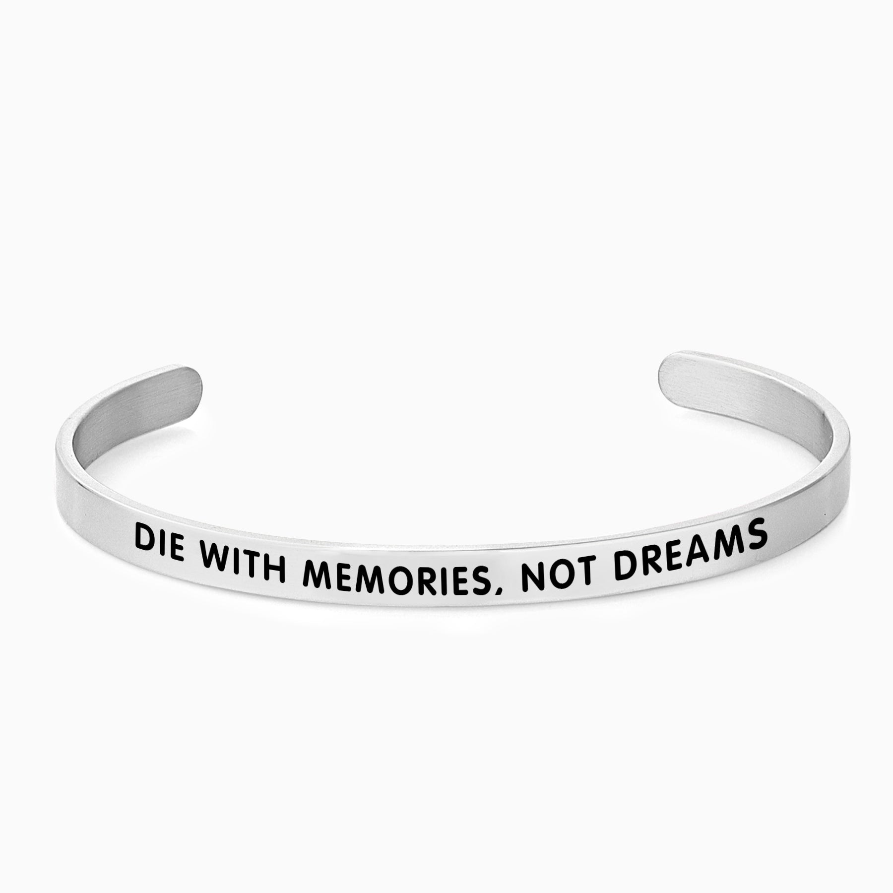 Ontdek de magie van "Die with Memories, not Dreams" met de armband "Die with Memories, not Dreams" en maak hem jouw constante metgezel op de reis naar een vervuld en avontuurlijk levenspad. Duik in de diepgaande betekenis en laat de inspirerende boodschap je hart raken. Laat de wereld zien dat je het leven met open armen ontvangt en laat je ziel stralen in een zee van levensvreugde en levensvervulling.
