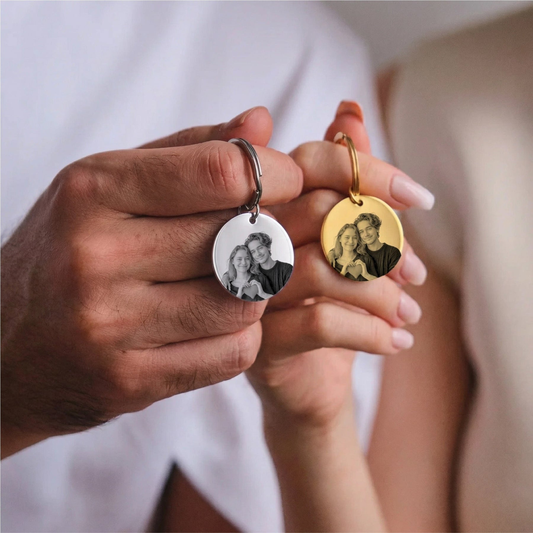 Gemaakt van hoogwaardig 316L roestvrij staal in zilver overtuigt de sleutelhanger door zijn robuuste, duurzame kwaliteit en een tijdloos design. De foto wordt gedetailleerd en permanent verwerkt, zodat deze ook in het dagelijks gebruik beschermd blijft en niet vervaagt.