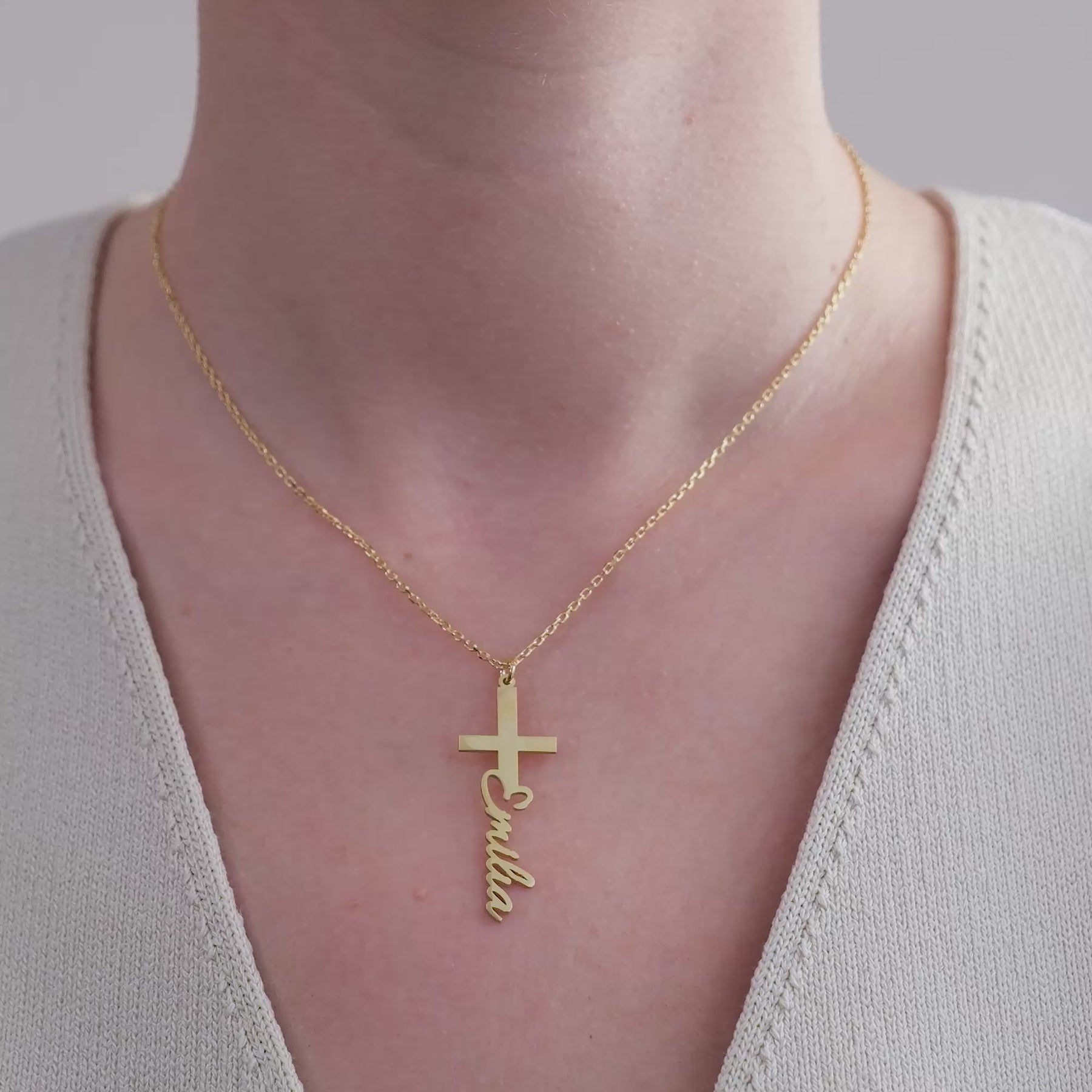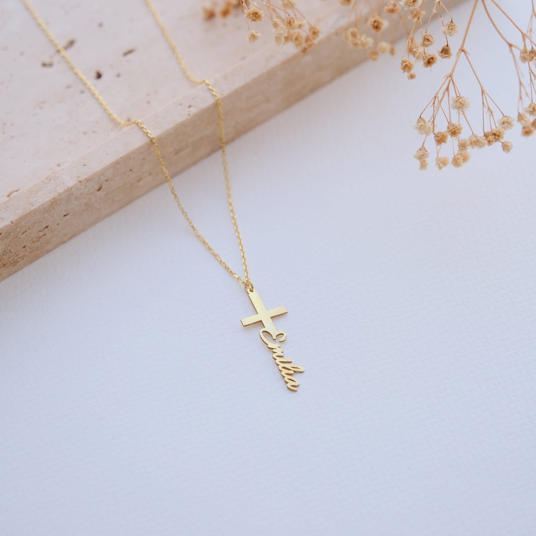 • Hanger: Kruis met gepersonaliseerde naam in elegante letters