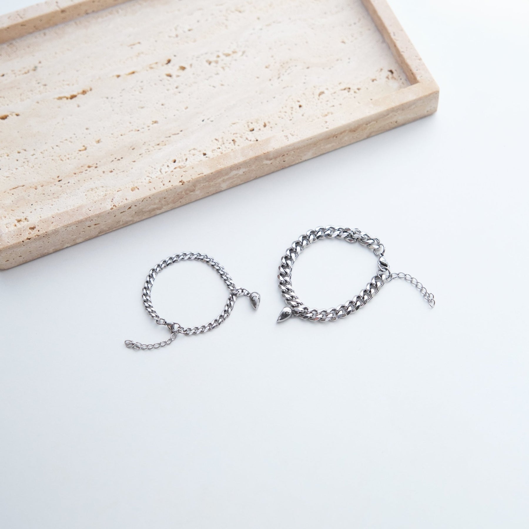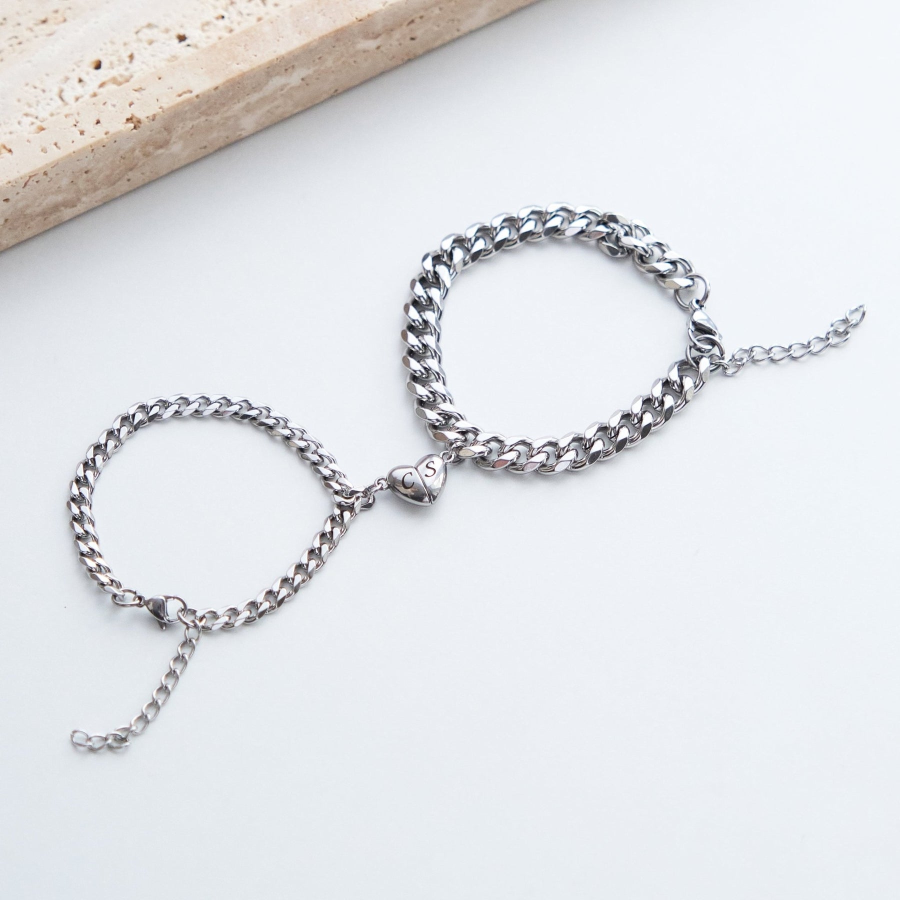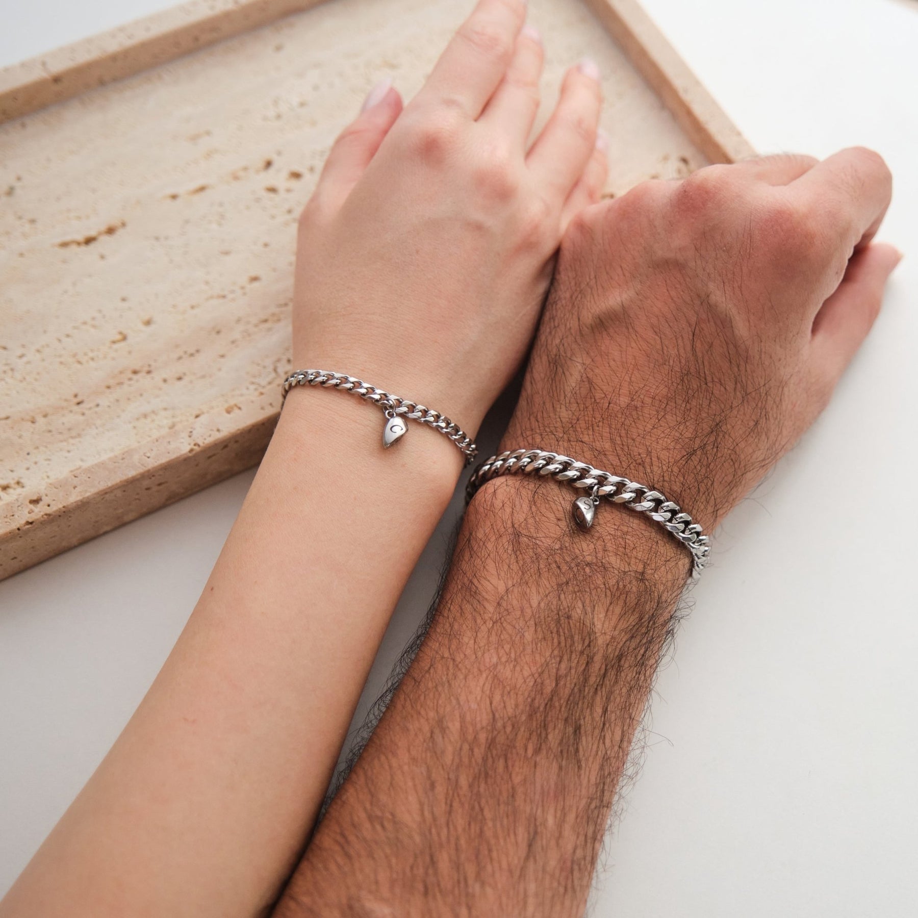 Deze stijlvolle partnerarmbanden van hoogwaardig 316L roestvrij staal staan voor verbondenheid, vertrouwen en liefde. Het moderne kettendesign combineert een klassieke schakelketting met een eenvoudig hart-element in zilver – tijdloos, elegant en perfect voor elke dag.