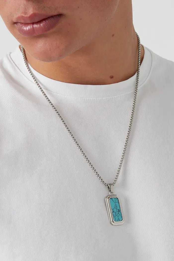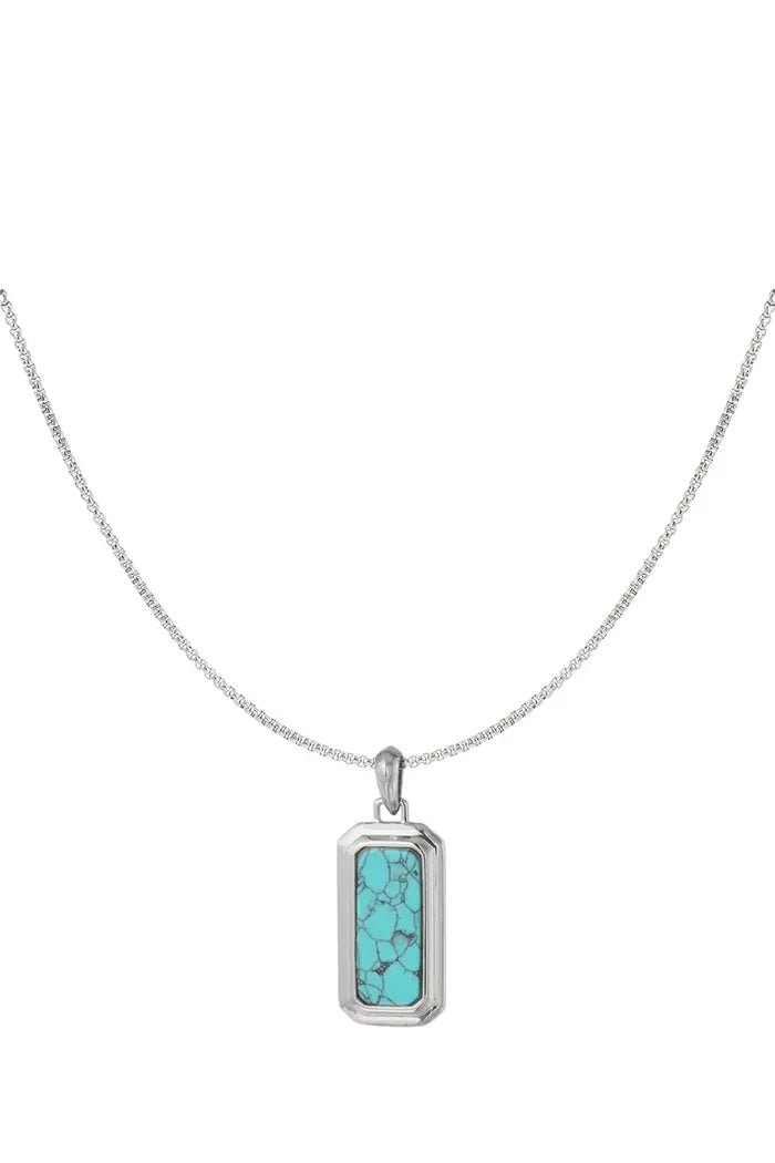 Deze modieuze herenketting combineert robuust roestvrij staal met een natuurlijke hanger van turquoise steen. De hanger geeft de ketting een mannelijke en tegelijk stijlvolle uitstraling. Met een lengte van 60 cm is de ketting perfect voor dagelijks gebruik of speciale gelegenheden. Het materiaal is duurzaam en corrosiebestendig, ideaal voor de moderne man die tijdloos design waardeert.