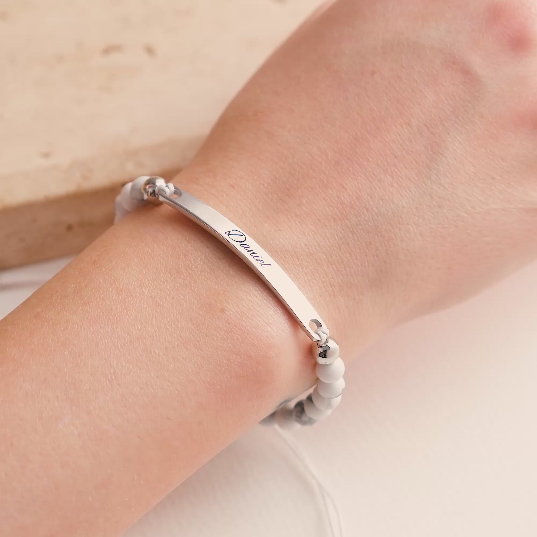 Wenn Schmuck nicht nur ein Accessoire, sondern ein Unikat sein soll ist dieses Armband die richtige Wahl. Mit unserem personalisierten Partnerarmband kommt dein persönlicher Style zum Vorschein. Das Armaband lässt sich individuell mit einem Namen, Wort oder Datum fertigen und wäre dein einzigartiger Modeschmuck. Für alle Individualisten aber auch als kreatives Geschenk das perfekte Schmuckstück, welches bei jedem Outfit - egal ob sportlich oder elegant – ideal zur Geltung kommt.