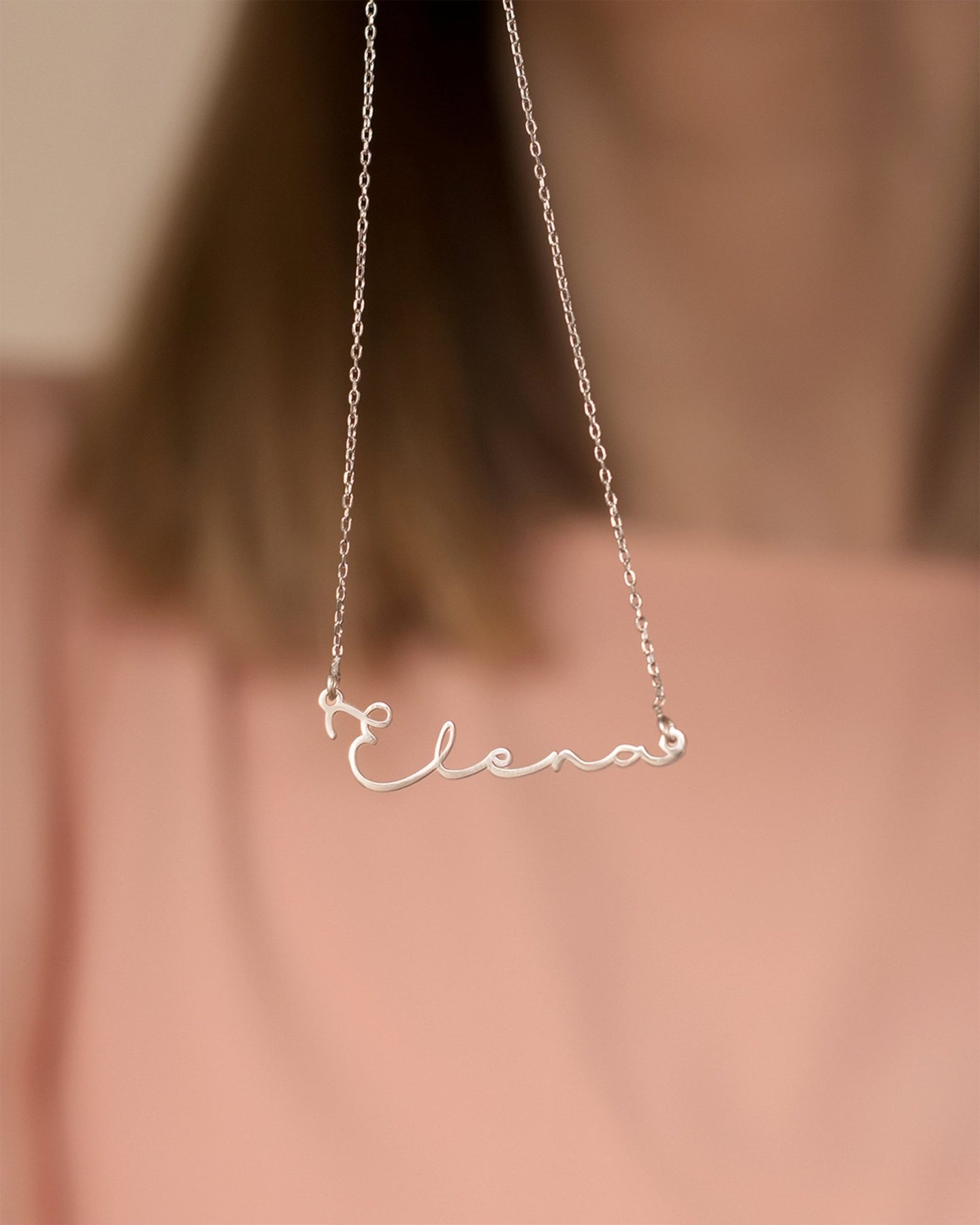 Unsere Namensketten entstehen aus erstklassigem Metall, um einen beständigen und luxuriösen Look zu gewährleisten. Wähle deinen eigenen Namen oder den eines geliebten Menschen, und wir formen die Buchstaben mit präziser Handwerkskunst in einem zeitgemäßen und ansprechenden Design.