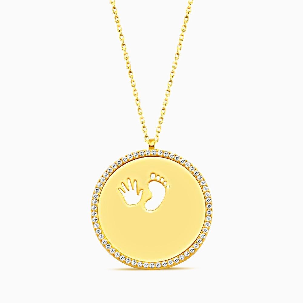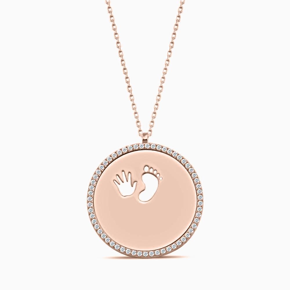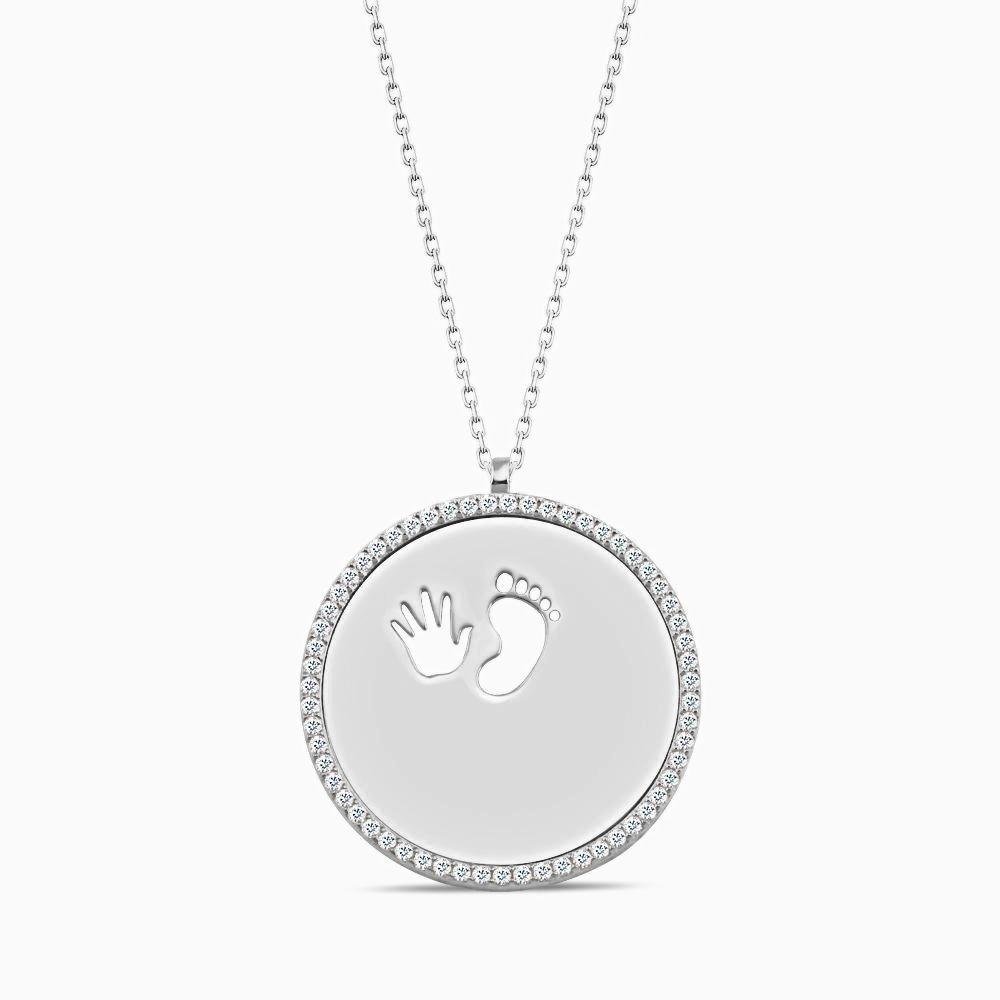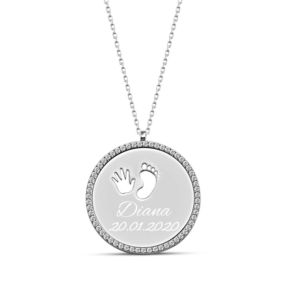 Zirkonia Halskette mit Baby Fußabdruck Handabdruck Plättchen Anhänger